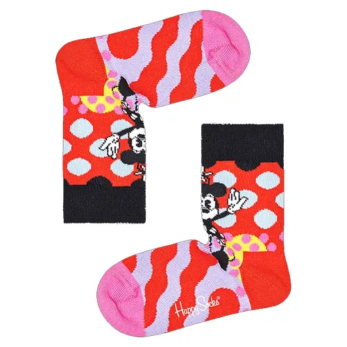 Ett par strumpor med ett annorlunda tryck för att förbättra din look med ett mjukt tyg.De mest hippa sockorna just nu Happy Socks! Dessa strumpor är mycket populära tack vare sina originella mönster och hög kvalitet.Barnstrumpor med Disney - Minnie design på en röd bakgrund.Denna roliga design med färger, former och speciellt Minnie, kommer säkert att få dem att le.