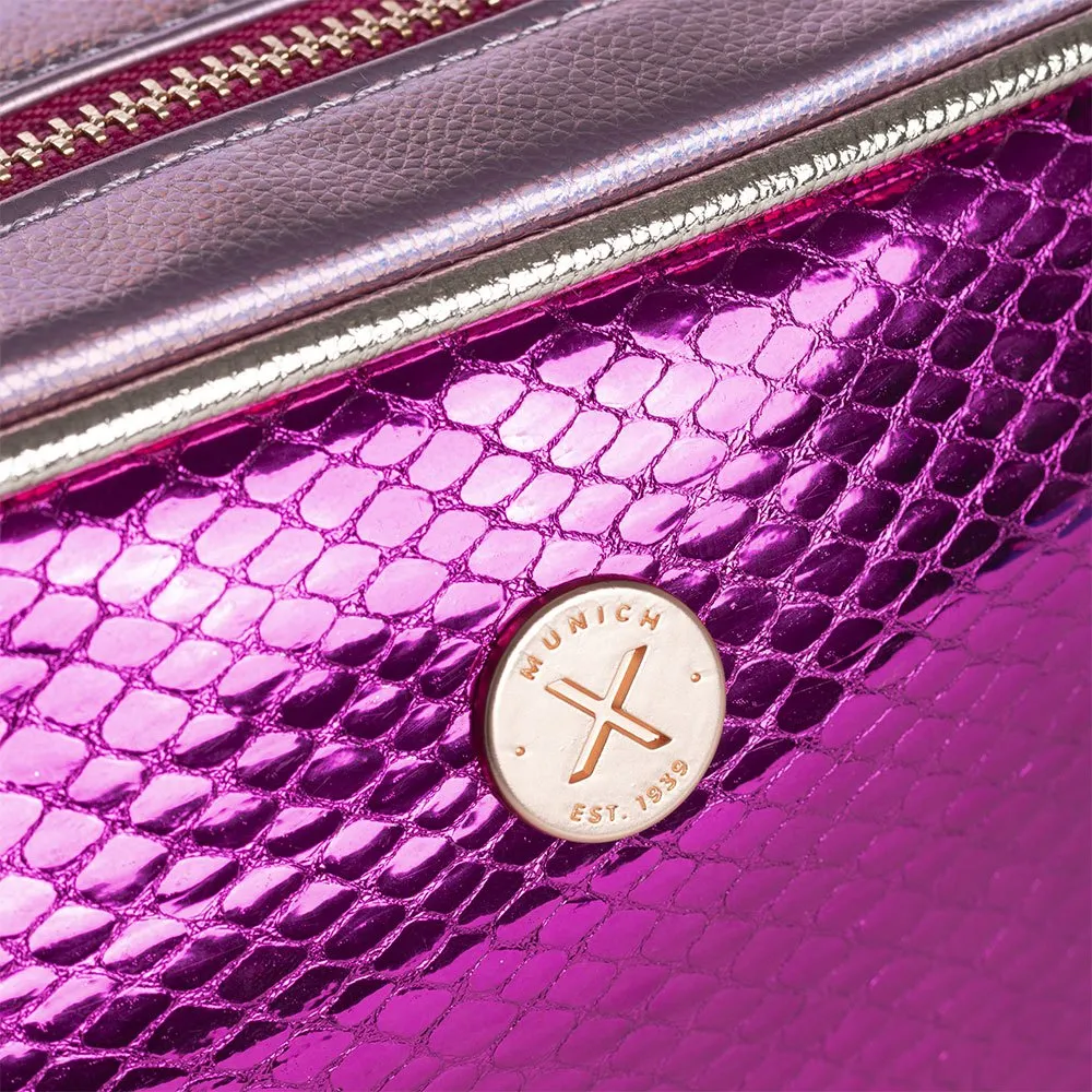 MUNICH Block Love Crossbody Pink erbjuder också mångsidighet med sin justerbara axelrem, vilket gör att du kan bära den som en axelväska eller justera den till önskad längd som en axelväska. Remmen är också avtagbar, vilket ger dig möjlighet att använda den som en clutch för mer formella tillfällen.