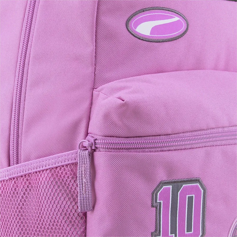 50 % återvunnet material; Vävda PUMA Motivemblem; Tvåvägs blixtlåsöppning in i huvudfacket; Foder Laptopfack inuti huvudfacket; Blixtlåsöppning i framfickan; Två sidofickor i mesh; Justerbara och vadderade axelband med reflekterande ögla av märket PUMA Cat; reflekterande slinga; Webbing bärhandtag; PUMA vävt logotypmärke med ordmärke