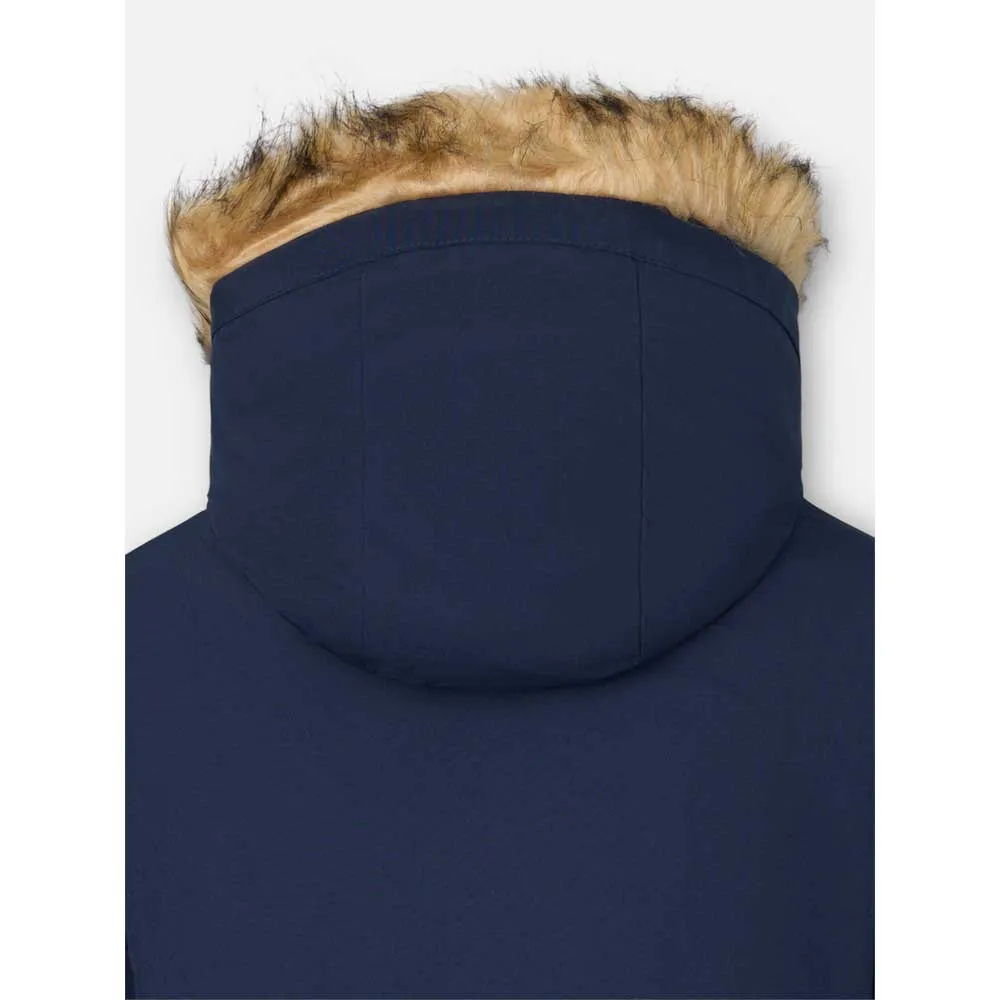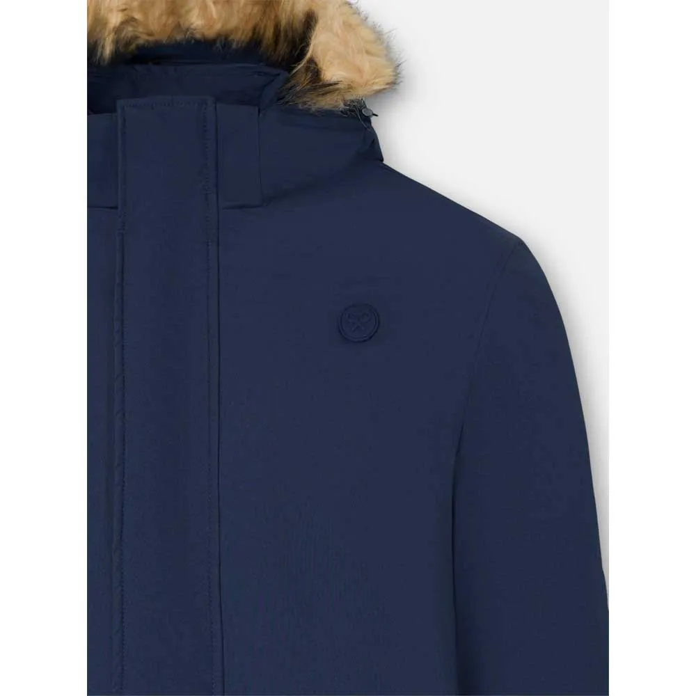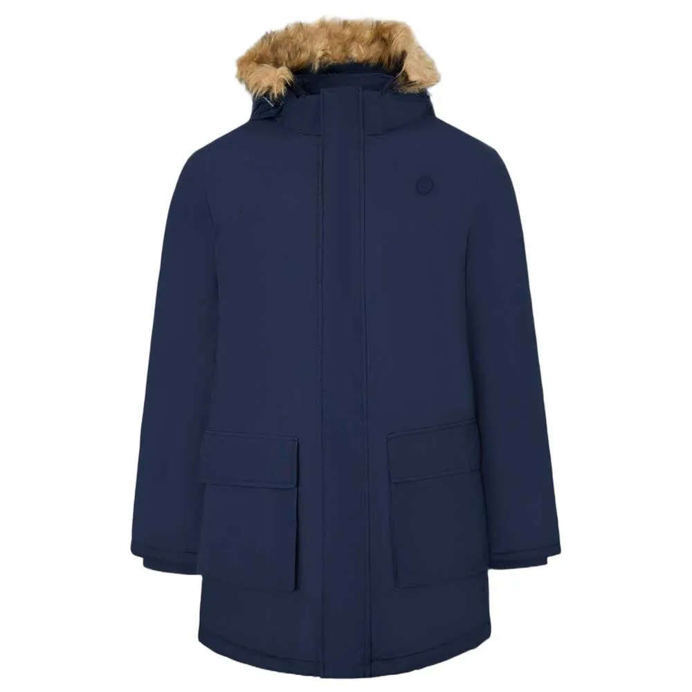 Lång teknisk kappa med en rak skuren huva. Den har påsydda fickor fram med lock, en metall dragkedja och en huva som krage. Den har också ett racketlogomärke på överkroppen.