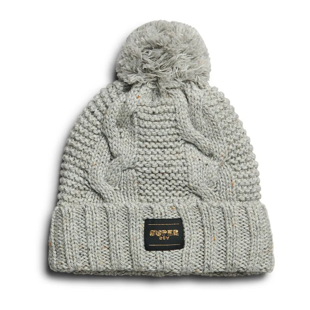 Kabelstickad design, Ullblandning, Bobble, Faux fur foder, Superdry patch.