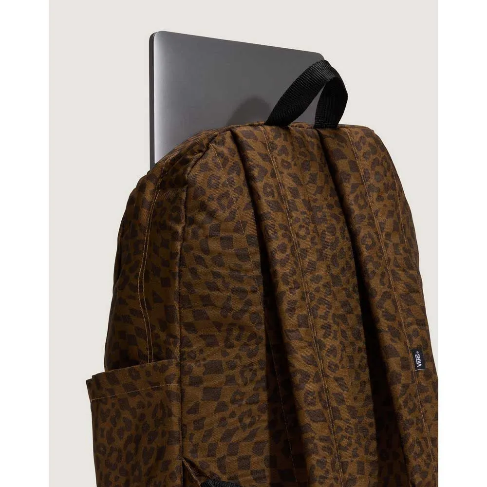Den är underbar, den klassiska old skool-ryggsäcken med ett väldigt originellt leopardmönster i kombination med de traditionella Vans-rutorna.
