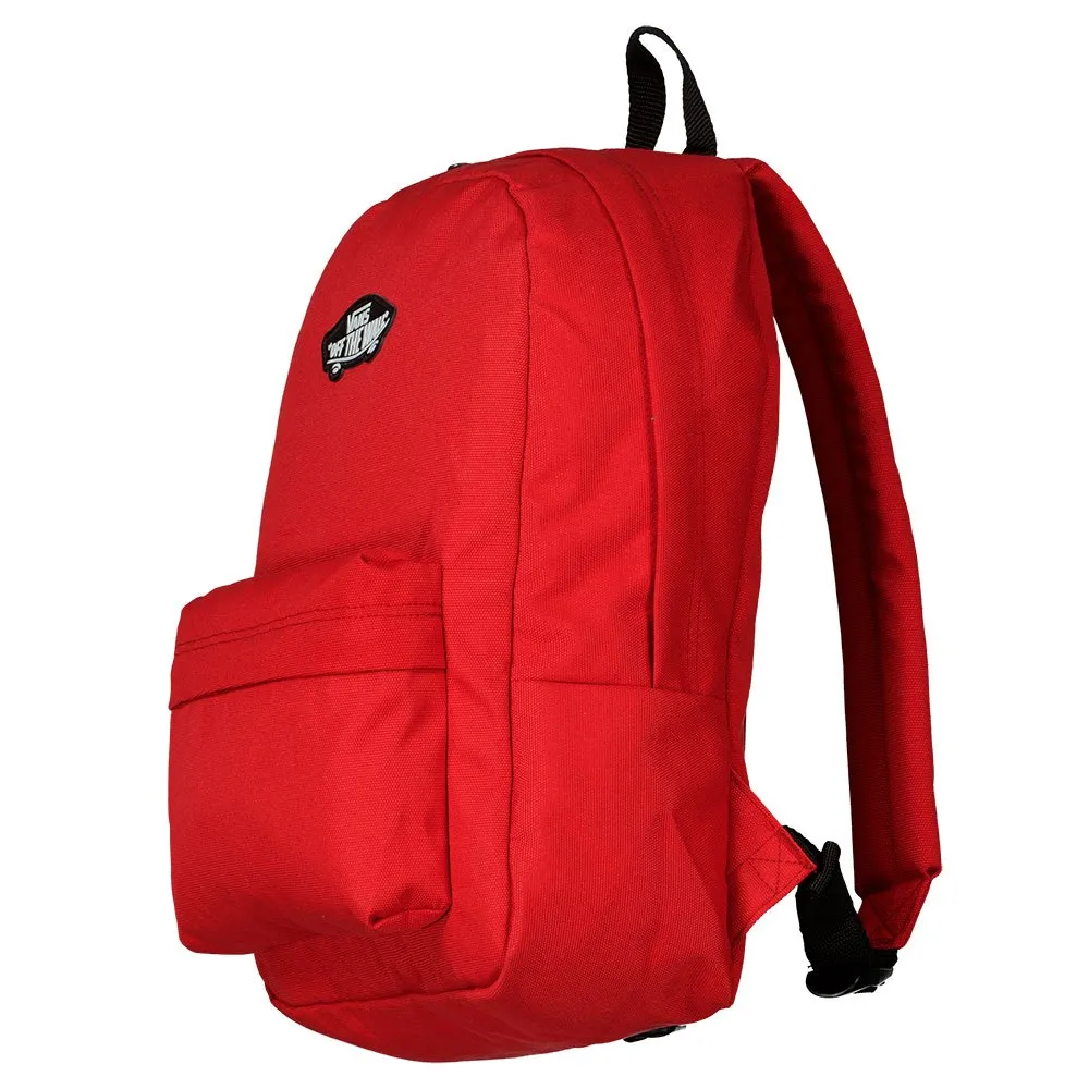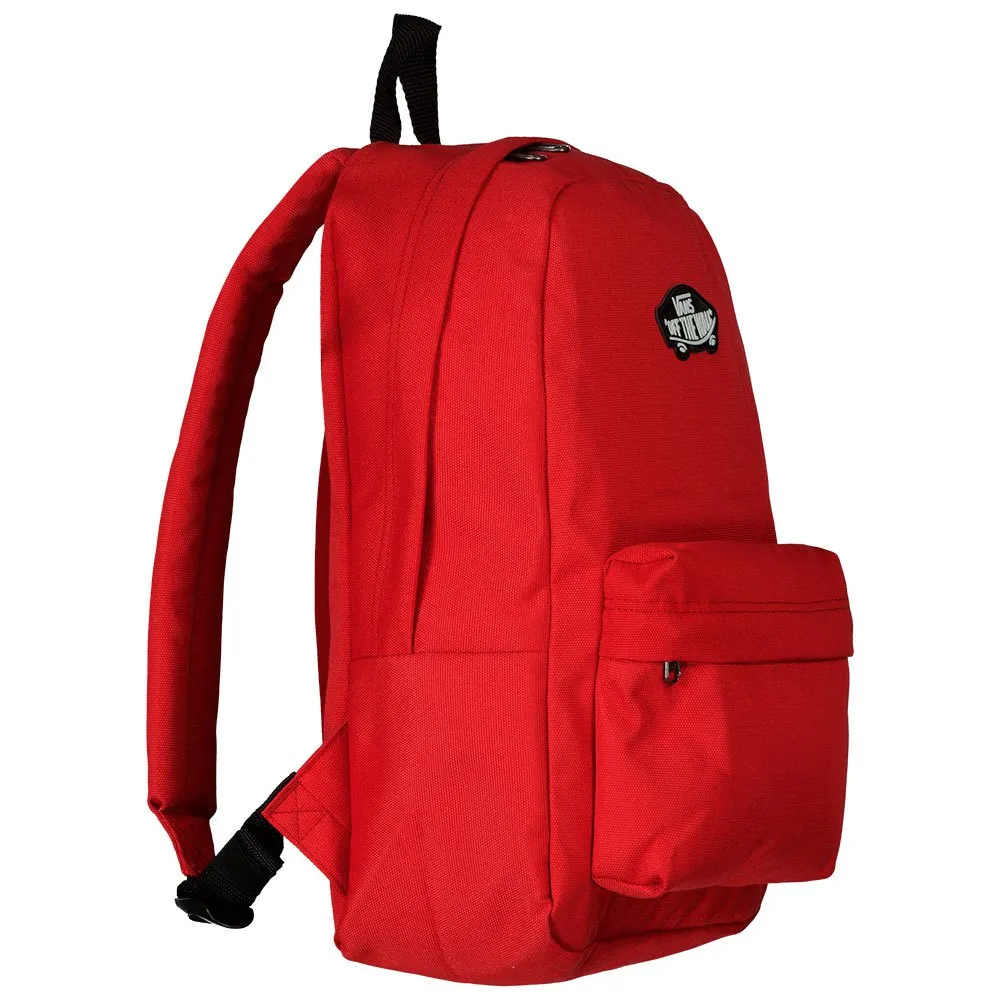 New skool ryggsäcken är en polyester ryggsäck med ett stort huvudfack, vans logotryck och en främre blixtlåsficka med inredning.