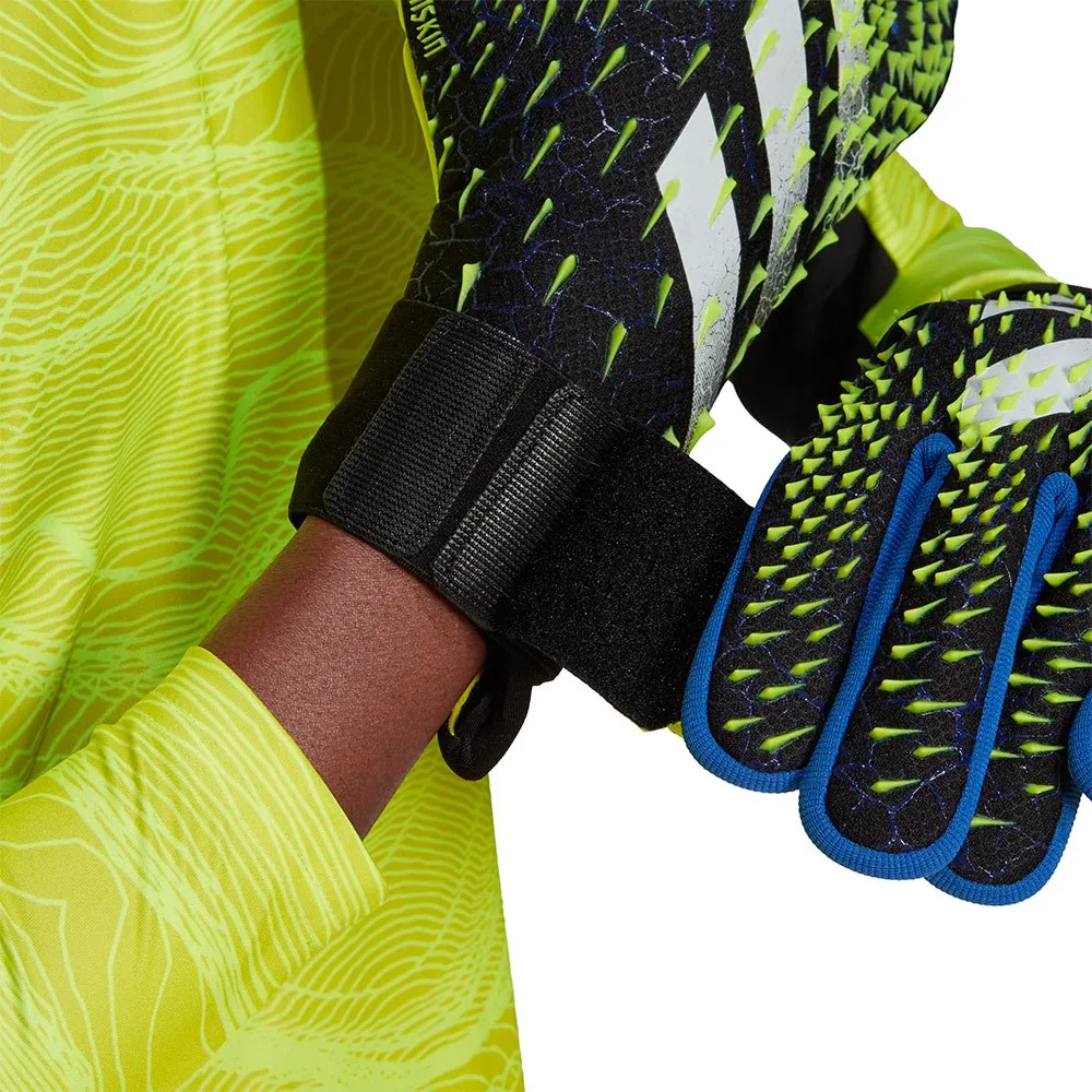 Disse adidas Predator Competition handsker er lette at trække på og føles naturlige og sikre med eller uden den aftagelige rem.