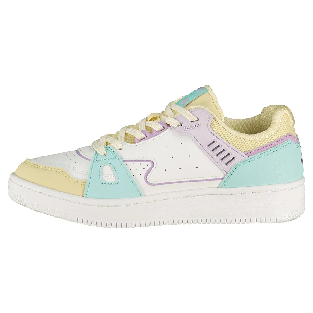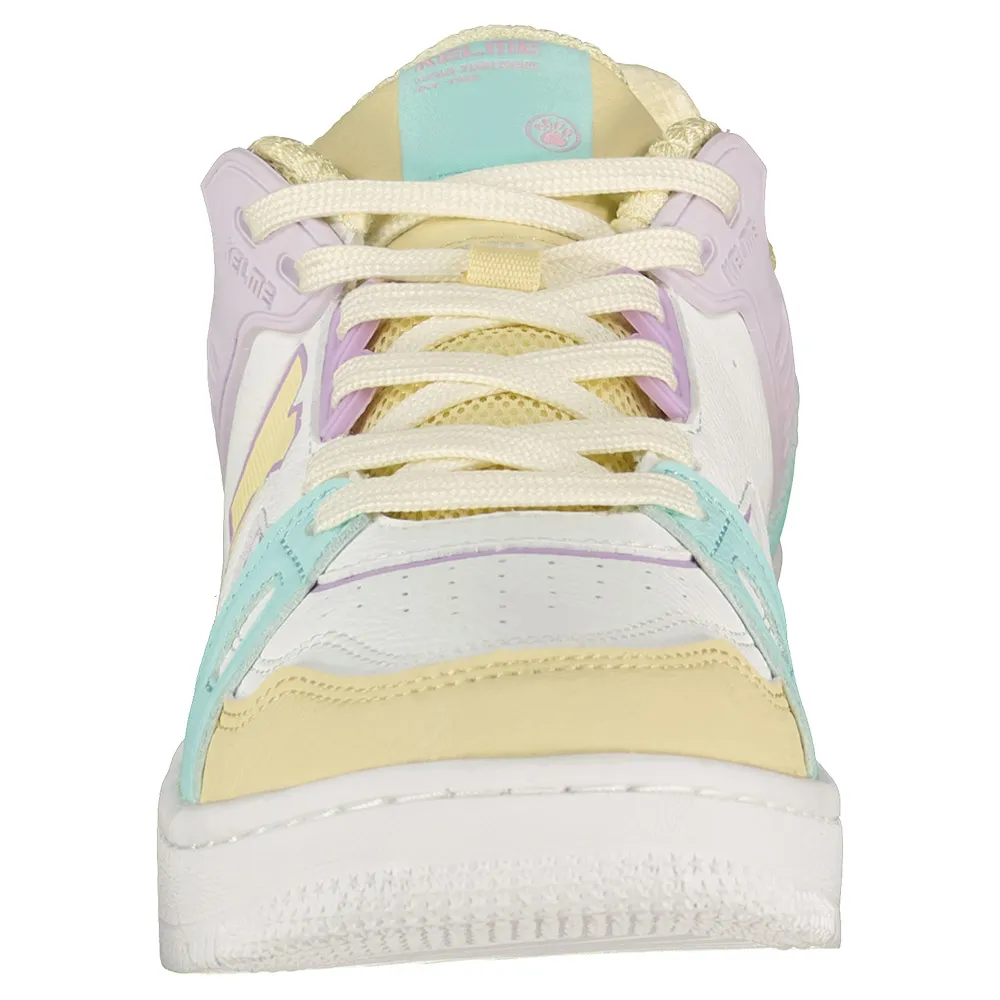 Den blødt teksturerede konstruktion i syntetisk læder fremhæves af den strategiske inddragelse af tekstilzoner, der understreger den karakteristiske stil.