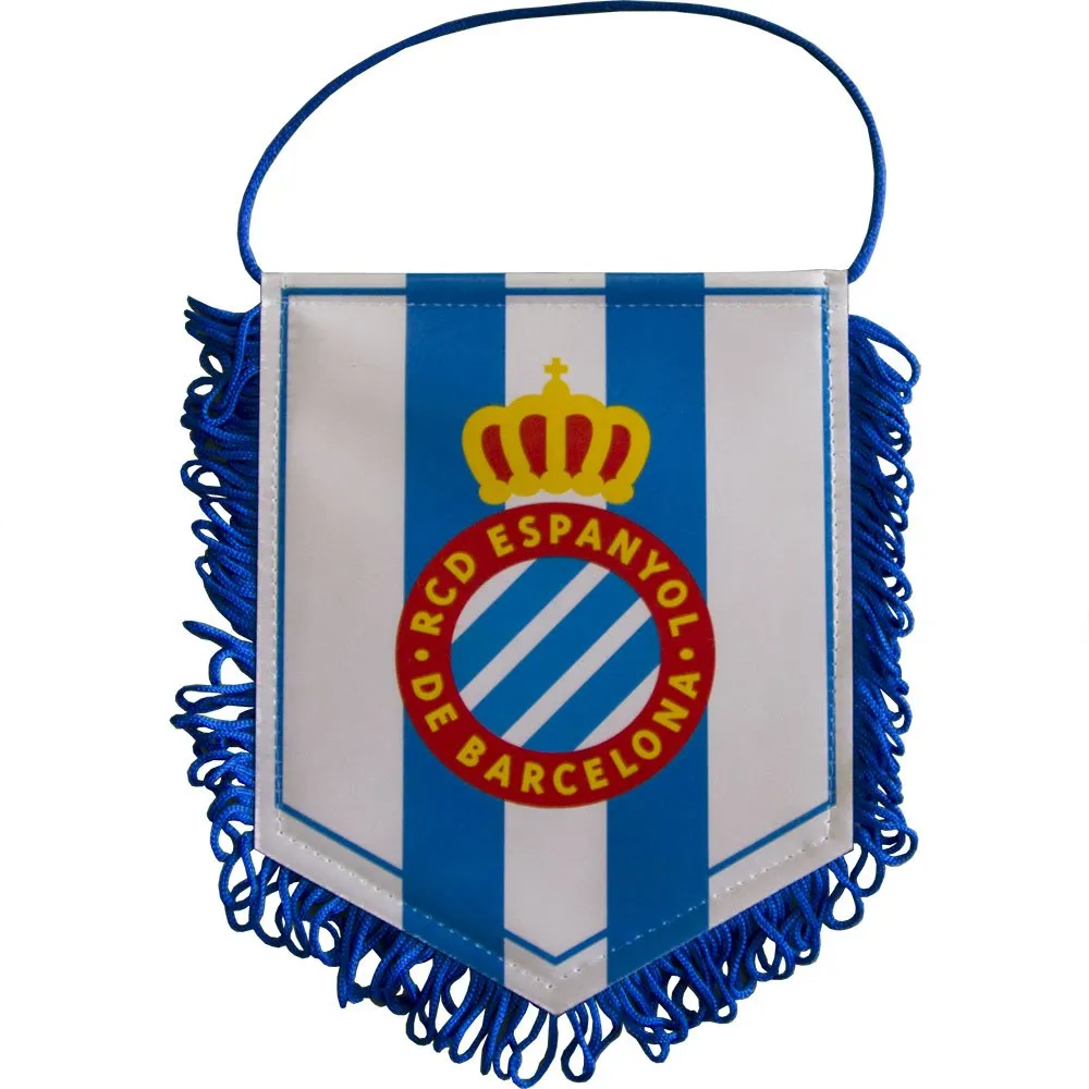 Med standard størrelse til faner er det den perfekte tilføjelse til enhver fans samling eller en slående dekoration til hjemmet, kontoret eller endda bilen. Den viser det officielle RCD Espanyol-logo, hvilket gør det muligt for fans at udtrykke deres støtte til klubben synligt, uanset hvor de vælger at vise den.