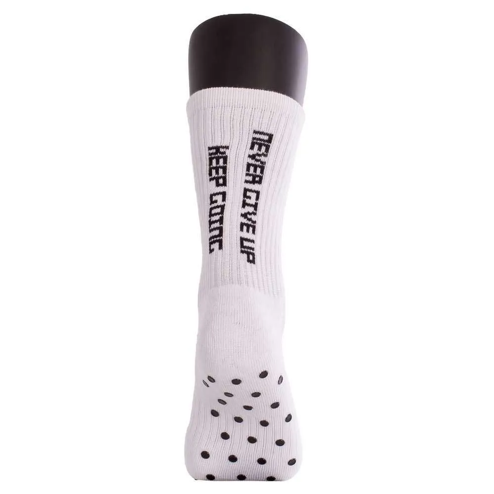 Socken aus weicher und angenehmer Textur. Sie passen sich perfekt an den Fuß des Benutzers an. Es hat einen flachen Nähzeh. Entworfen in hoher Höhe. Es hat Gummidetails auf der Sohle, um ein Verrutschen der Füße zu vermeiden.
