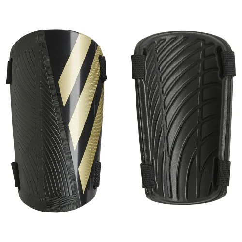 These adidas Tiro Training shin guards include two hard shields that are each held firmly in place by a pair of hook-and-loop straps.