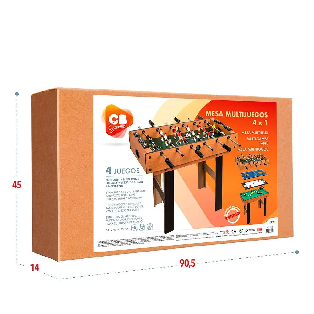 CBGames multigames table with wooden frame and 4 games with accessories.