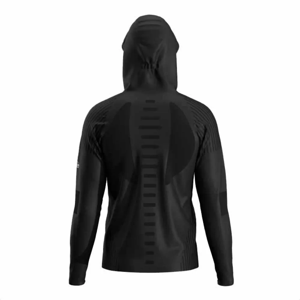 Thermal jacket for men. Developed with BRAMA technology, a system that ensures optimal ventilation and thermoregulation. The new generation of Jom´s thermal line has arrived. It guarantees that your core temperature remains stable, regardless of your effort or the mountain climate. Ergonomic construction and raglan sleeve for maximum fit and second-skin sensation. Its construction with FLATLOCK flat seams enhances comfort and offers greater adaptability. It features a lockable zipper closure, chin protector, and hood with elastic adjustment. Ultralight fabric capable of maintaining body warmth while wicking away sweat thanks to quick-drying fibers. To enhance performance, a ventilation system has been incorporated in areas of high perspiration. It also has compression panels in strategic points that actively reduce muscle fatigue levels and provide support to the muscular system. Freedom of movement guaranteed. Joma Trail logo in printing.