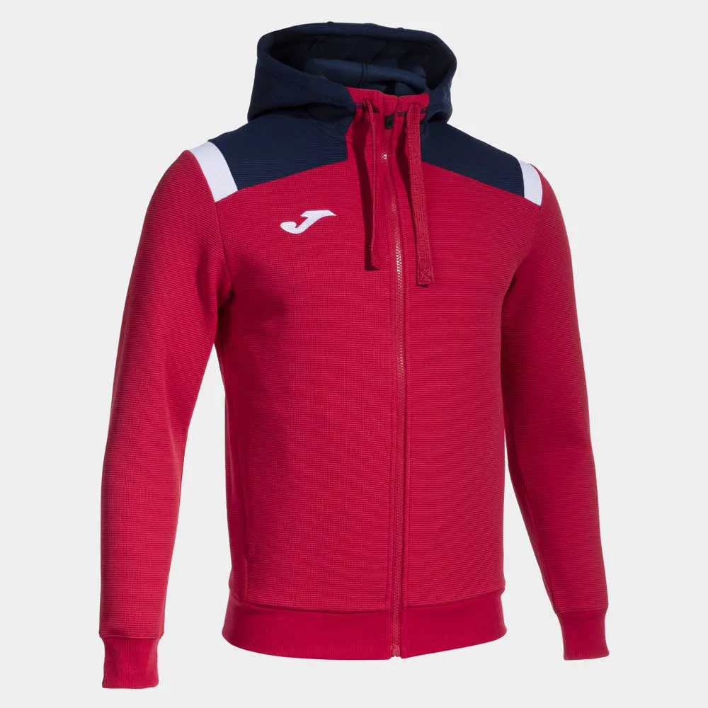 Zip-up sweatshirt. Very comfortable, practical, and elastic mid-season jacket to use in any sports training. Features a full injected zipper closure and a chin protector preventing any rubbing. Also features a hood and ribbed cuffs and hem for a more comfortable fit. Featuring two front pockets with zipper closure, where you can safely store small objects. Made with comfortable, breathable, and elastic fabric, ensuring athlete´s freedom of movement during use. Design with contrasting color pieces. Embroidered Joma logo.