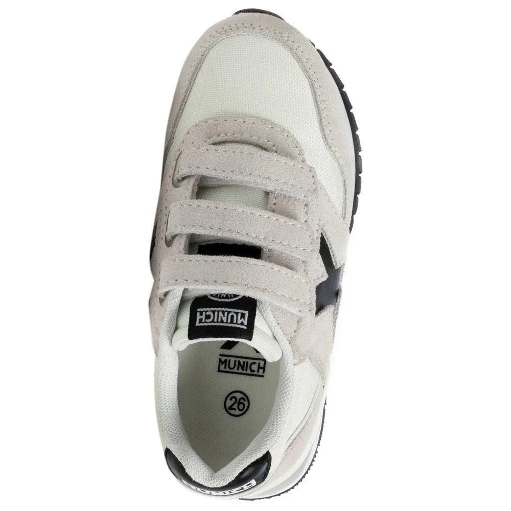 Step into timeless style with the MUNICH Dash VCO IN trainers. Inspired by classic retro running shoes, these trainers for boys and girls blend heritage design with kid-friendly features. The dual Velcro straps ensure a secure fit and easy on-and-off, while the durable, easy-to-clean upper is built for daily play. A cushioned insole provides all-day comfort, and the non-marking indoor sole makes them perfect for school and urban adventures. It´s the ultimate fusion of iconic style and modern practicality for young trendsetters
