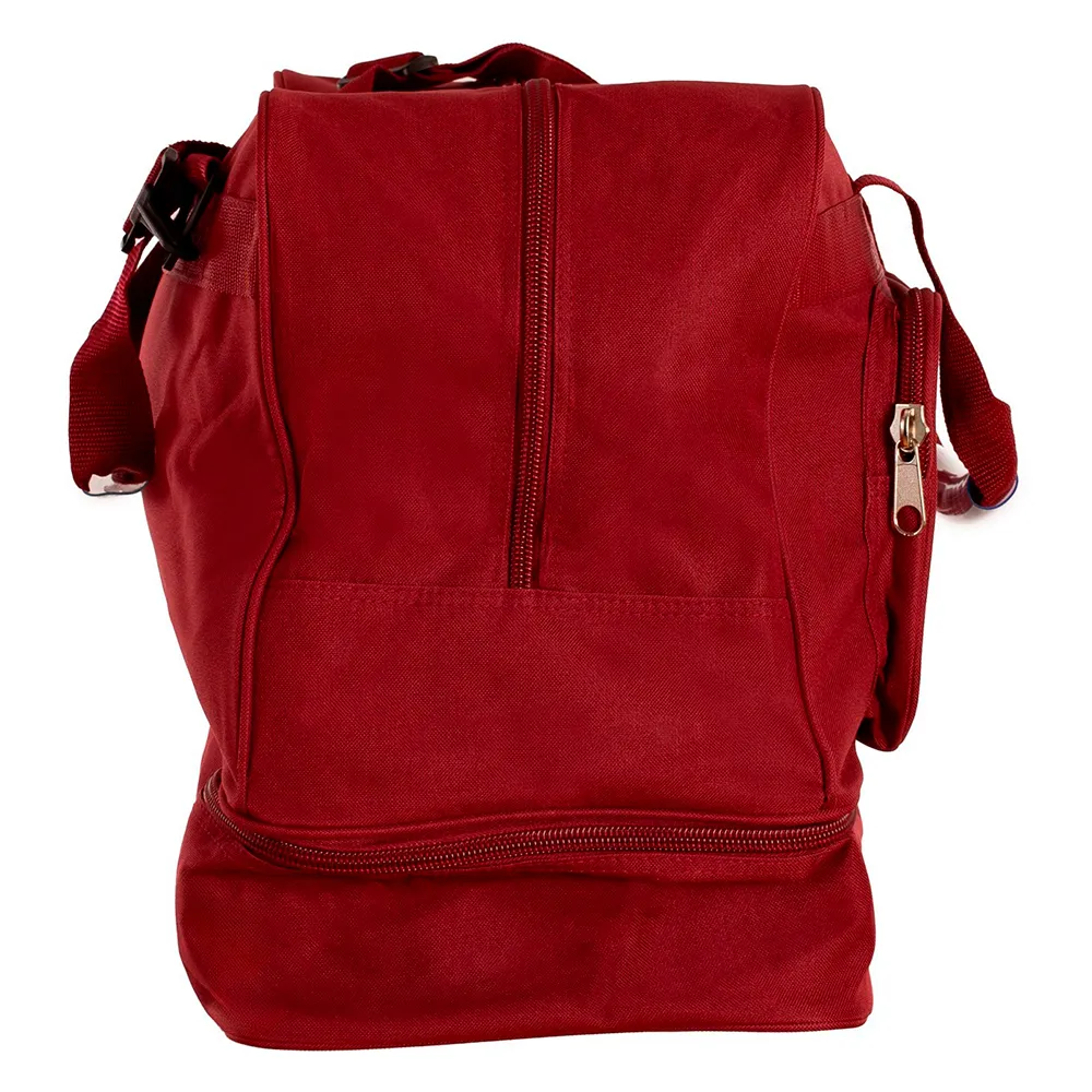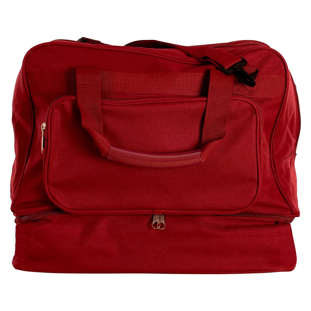 Urheilukassi kenkätilalla treenivaatteiden ja kenkien siistiin kuljettamiseen. Siinä on kolme osastoa, päälokero, pienempi etulokero ja kenkätila pohjassa. Suunniteltu kahdella lyhyellä ja yhdellä pitkällä säädettävällä kantokahvalla. Täysin neutraali. Mahdollisuus mukauttaa joukkueesi logoilla tai kuvioilla.