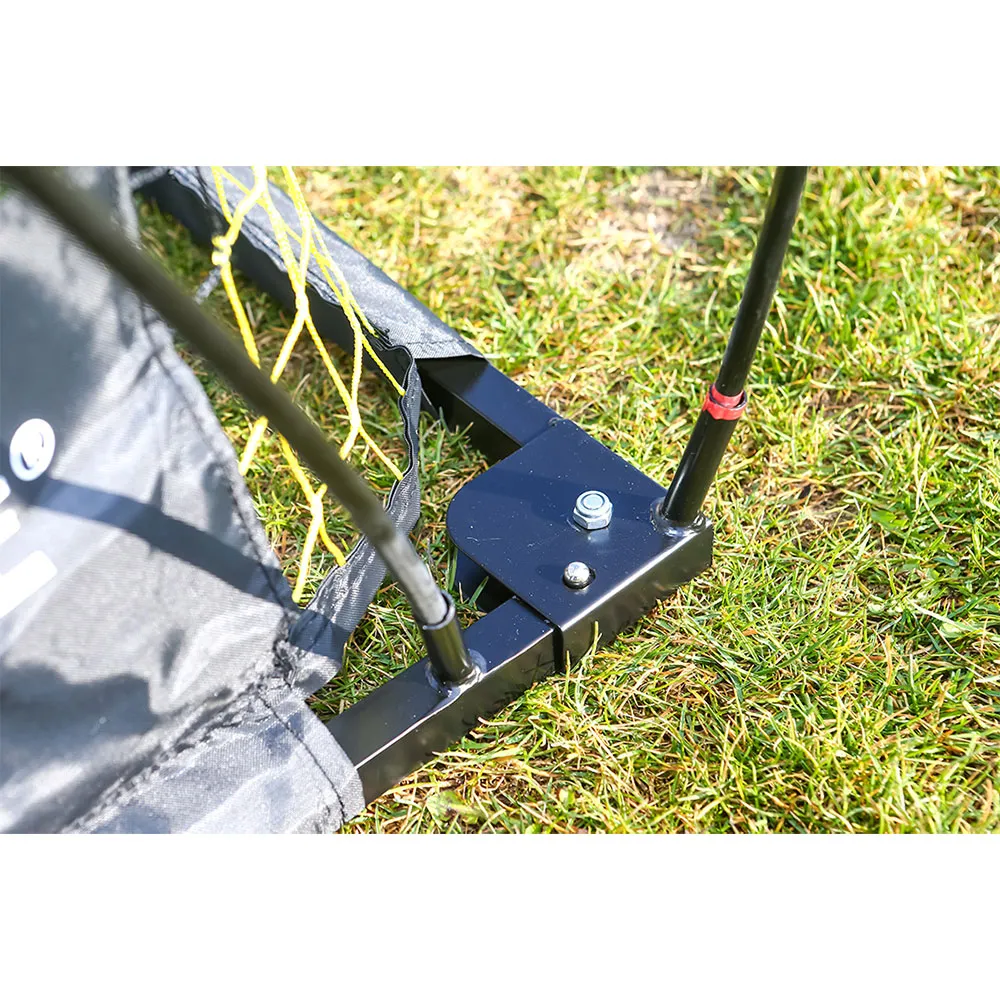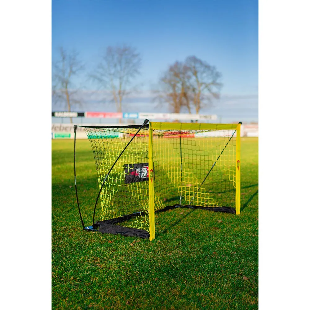 È facilmente portatile, rapido e facile da montare. Con il suo design elegante e creativo questo obiettivo sembra perfetto nei giardini, sui campi da calcio e nei palazzetti dello sport, quindi perfetto per interni ed esterni! La sua stabilità è rinforzata con cuscinetti in gomma che impediscono lo scivolamento e danni al pavimento e la struttura robusta in grado di resistere a tutte le condizioni atmosferiche! I pali sono rinforzati con fibra di vetro per un'eccezionale resistenza leggera e assorbimento degli urti. È possibile impostare questo obiettivo di calcio in un lampo grazie al pratico sistema di pali flessibili semplicemente infilare i bastoncini attraverso le maniche di tela e attaccare la rete! Divertiti senza fine con il rebounder integrato che può anche aiutarti con il tuo allenamento! Facilmente trasportabile con una borsa per il trasporto inclusa!