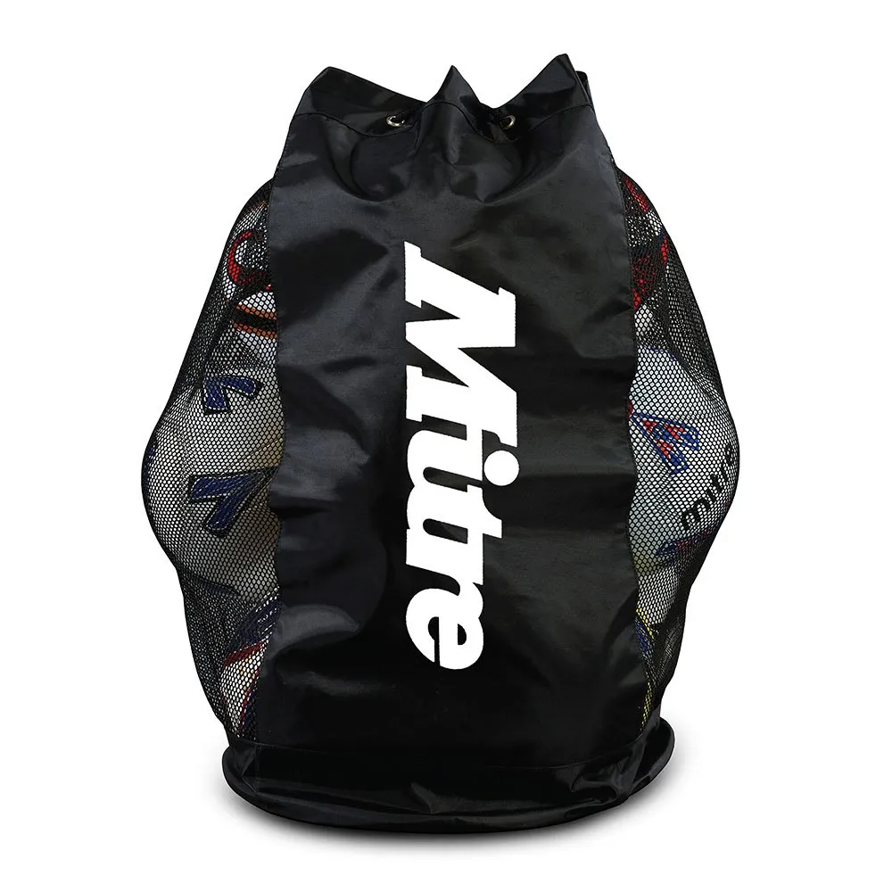 Nylon- og nettingsekk med justerbare skulderstropper rommer opptil 12 oppblåste størrelse 5 fotballer - et must for treningsfeltet.
