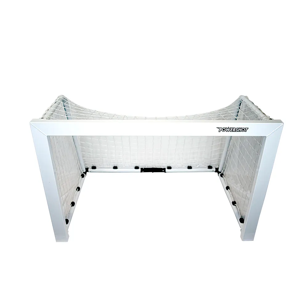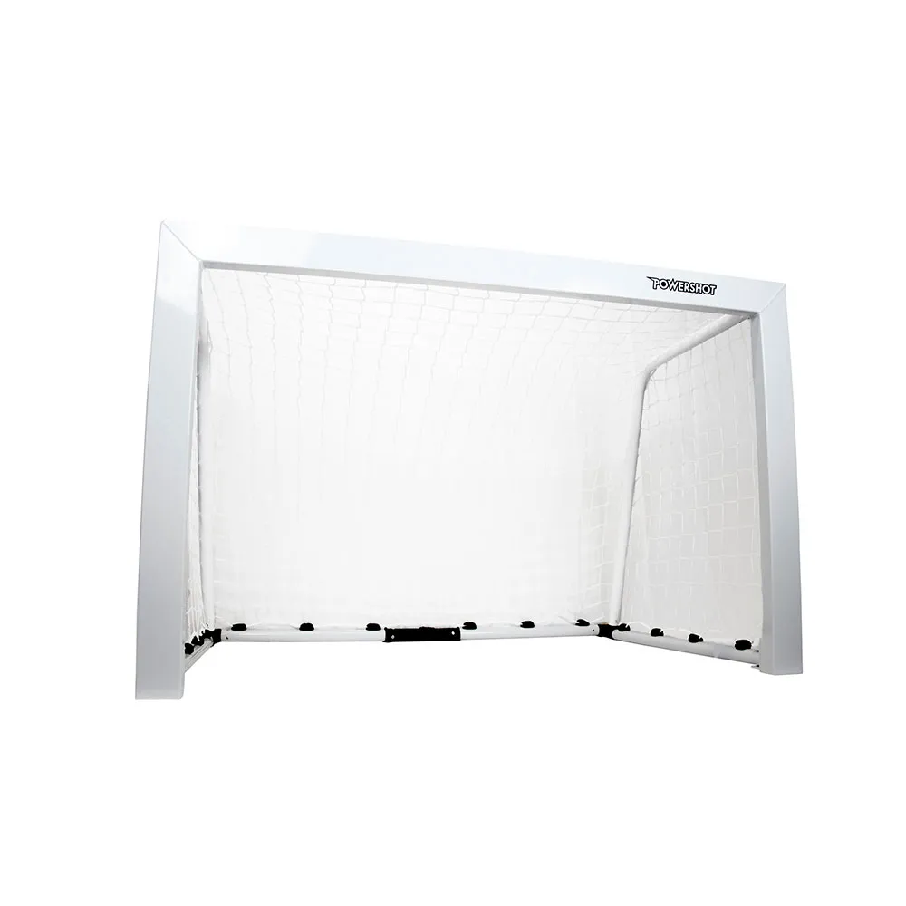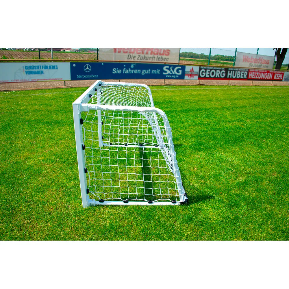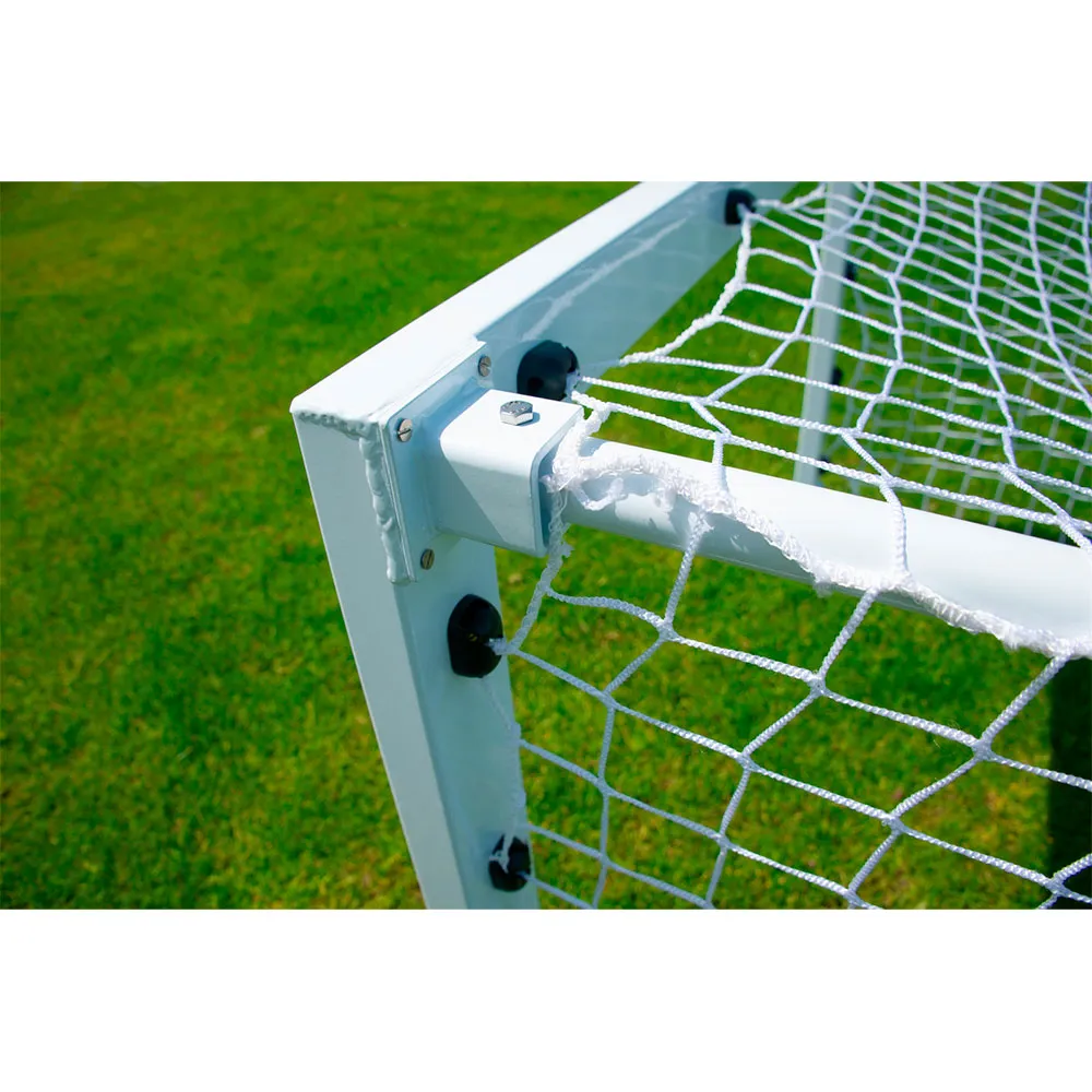 Material: alumínio de 80 x 40mm Pontos positivos: Rede de malha simples sem nós, branca. Estrutura sólida e resistente em alumínio. Clipes na barra para reter as barras durante o transporte. Barra traseira com peso próprio, garantindo estabilidade e segurança do objetivo. 2 Dimensões da meta