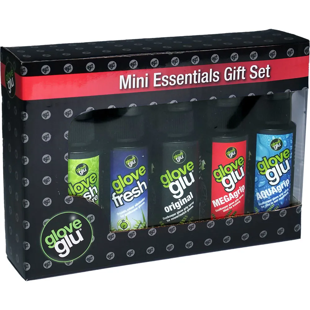 Alla GloveGlu-favoriter: det perfekta presentsetet för målvakter! Håll dina handskar rena, med en fräsch doft och bra grepp i alla förhållanden med Mini Essentials Gift Set. De 5 flaskorna på 50 ml är den perfekta introduktionen till handskvård eller en idealisk present till målvakter.