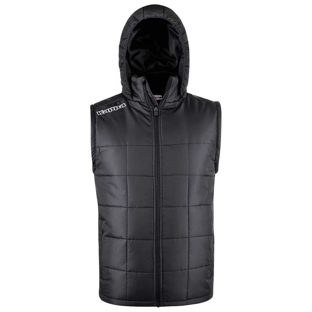 Huva, avtagbara ärmar, full dragkedja fram, fickor utan dragkedja och elastiska muddar.