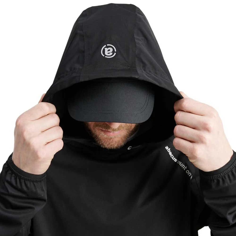 Abacus-logo øverst på hætten, foran på skulderen og langs højre ærme.