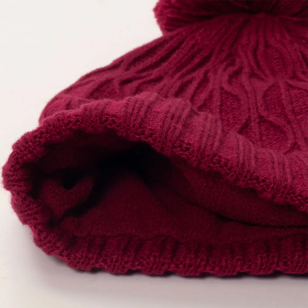 Kabelstrikket hue med pompon.