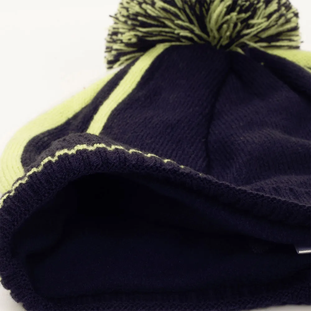 Mona bobble-huen kan bryste sig af et moderne look takket være det sporty stribedesign.