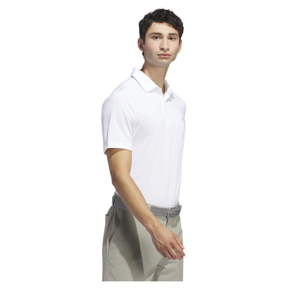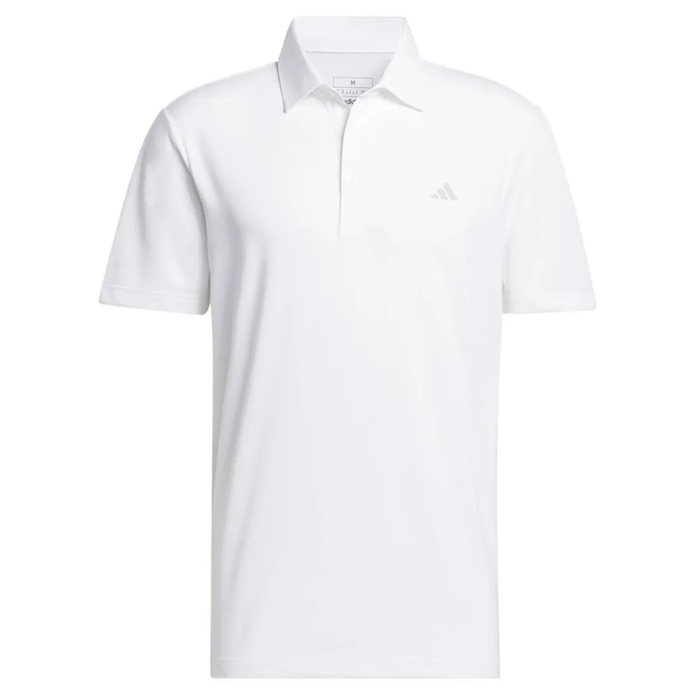 Dieses solide adidas Poloshirt besteht aus elastischem, weichem Single-Jersey-Material, das Sie über 18 Löcher hinweg bequem hält.