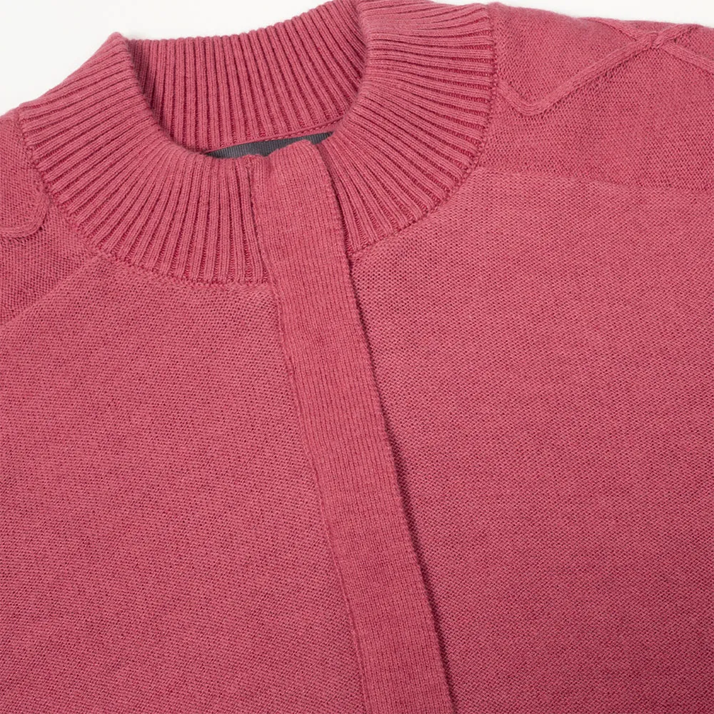 Er verfügt über ein grob gestricktes Zopfmuster an den Sattelschultern für einen interessanten Strukturwechsel.