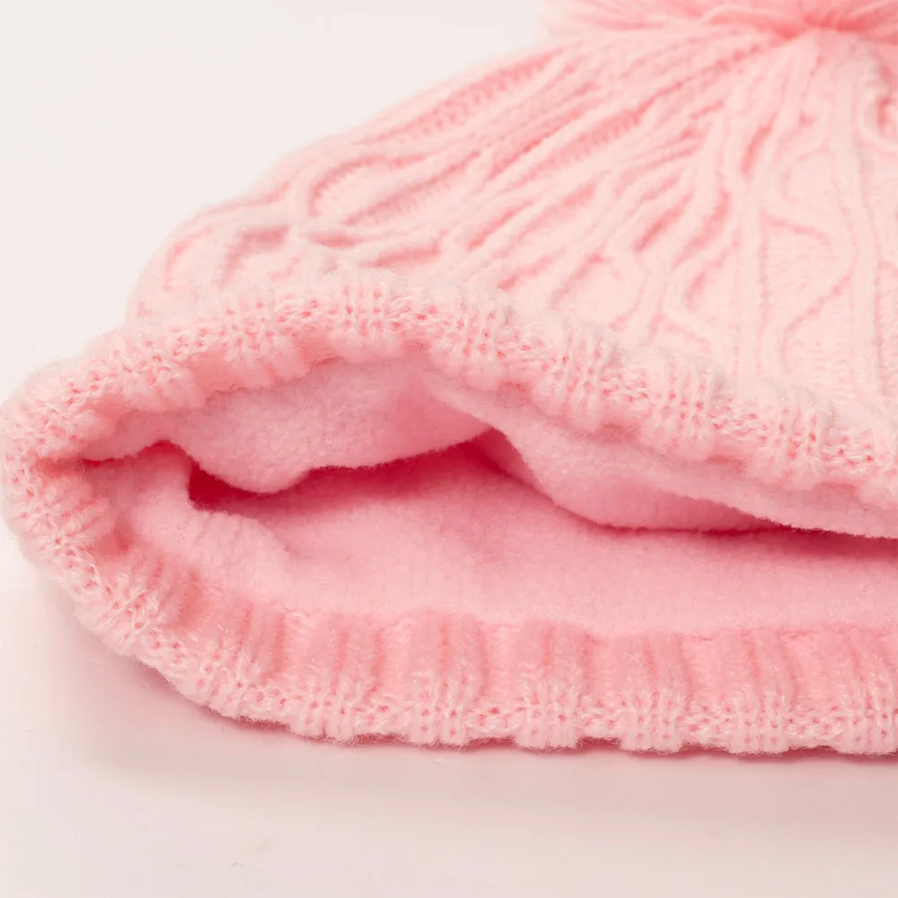 Cable stitch beanie hat with bobble.