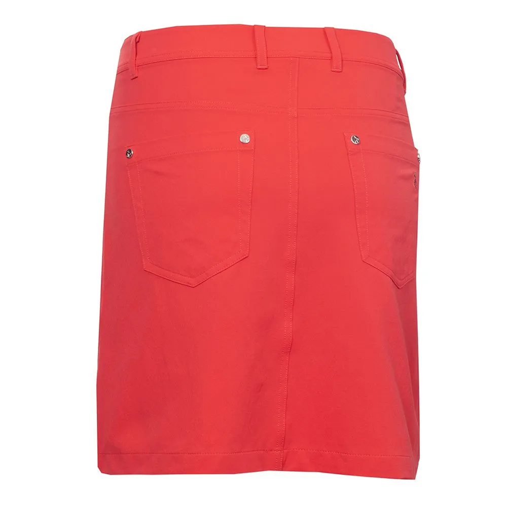 Sophisticated skort featuring shiny metal rivets front and back, at pockets and belt loops.