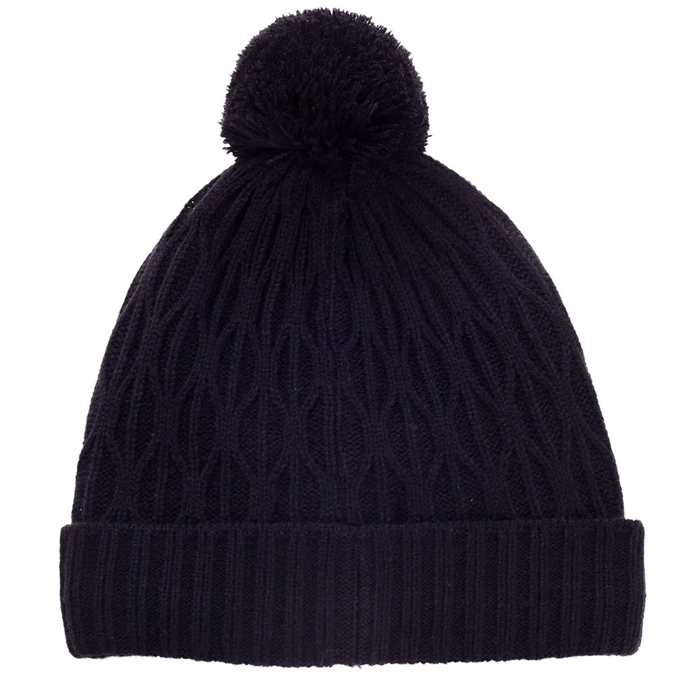 El gorro de pompón Marybeth de Green Lamb luce un llamativo patrón de punto de enrejado con dobladillo de punto de canalé y será la guinda del pastel para tu look este invierno.