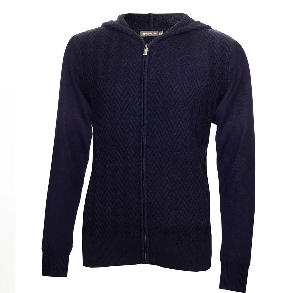 Täysin vetoketjullinen neulottu takki, jossa on ruutukuvio edessä ja takana.