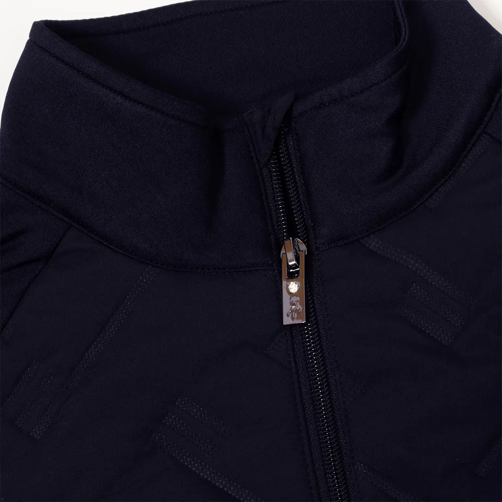Kevyt, koko vetoketjullinen, joustava jerseytakki kudotuilla topatuilla etupaneeleilla.