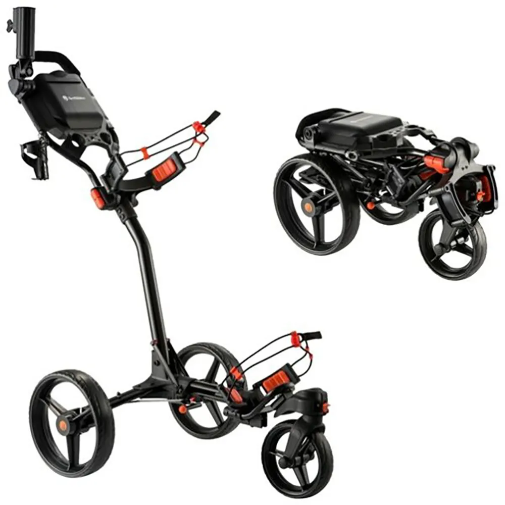 Käytännöllisyys on TURFGLIDER 360:n suunnittelun ytimessä. Sen intuitiivisen, yhden vaiheen taittomekanismin avulla voit taittaa kärryn vaikuttavan pieneen kokoon muutamassa sekunnissa. Tämä kevyt ja kannettava muotoilu tekee säilytyksestä ja kuljetuksesta helppoa, mahtuen helposti lähes mihin tahansa auton tavaratilaan ja jättäen runsaasti tilaa muille varusteillesi. Autosta kentälle siirtyminen ei ole koskaan ollut nopeampaa tai helpompaa.