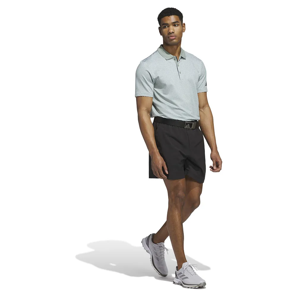 Shorts de golf tissés fabriqués en partie avec un mélange de matériaux recyclés et renouvelables.
