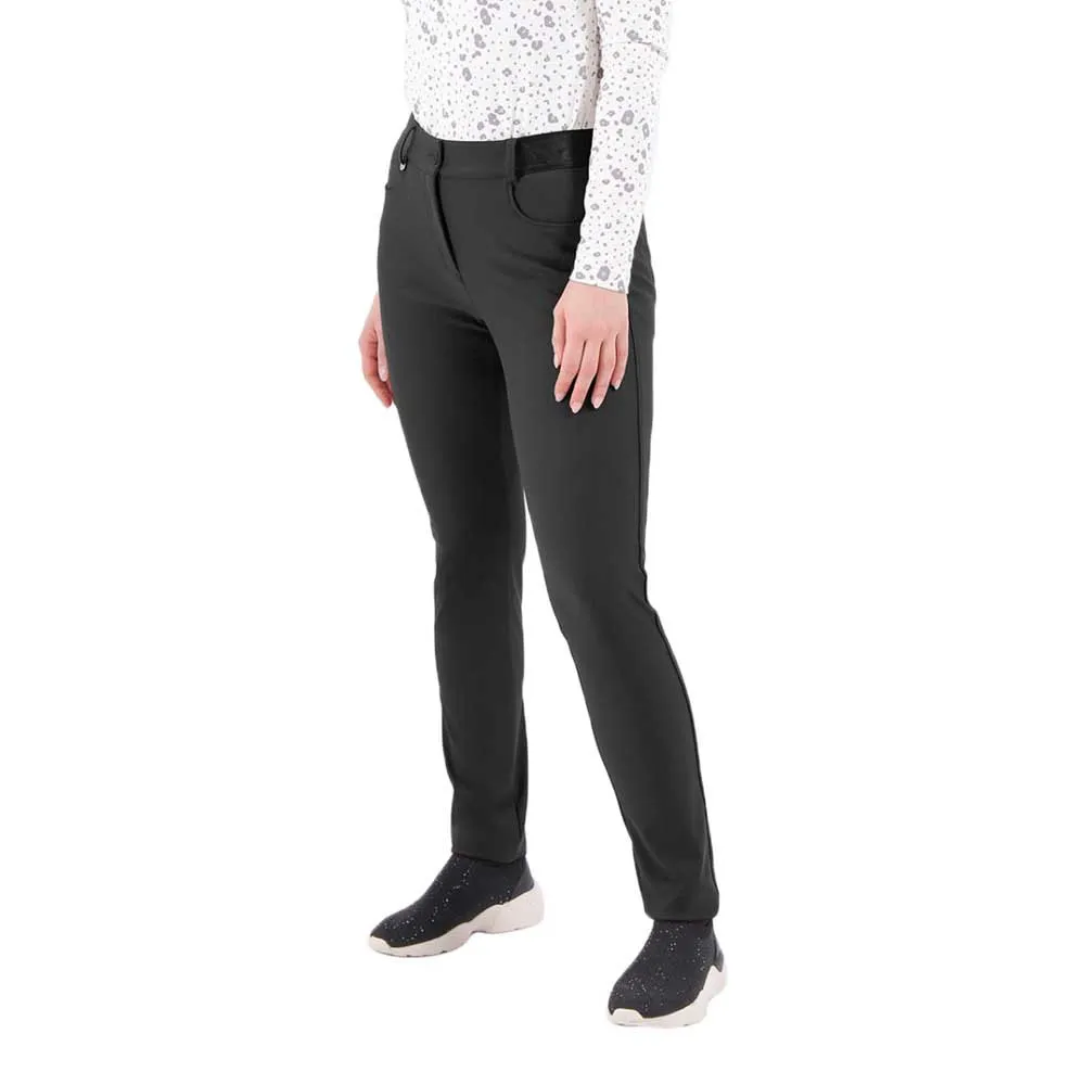 La coupe ajustée et les lignes épurées sont l´essence de Singolo. Ce pantalon Pro-Therm pour femme est idéal pour celles qui décident de fouler le green même lorsque les températures sont plus froides. La technologie Soft-Shell du tissu à trois couches avec un intérieur brossé conserve la chaleur, est déperlante et coupe-vent. La légèreté et l´élasticité garantissent la respirabilité et le confort. Fermeture à bouton et à glissière, plaque logo sur la boucle de ceinture, élastique doux avec grip à la taille, poches arrière avec coutures et logo brodé : les détails font la différence.