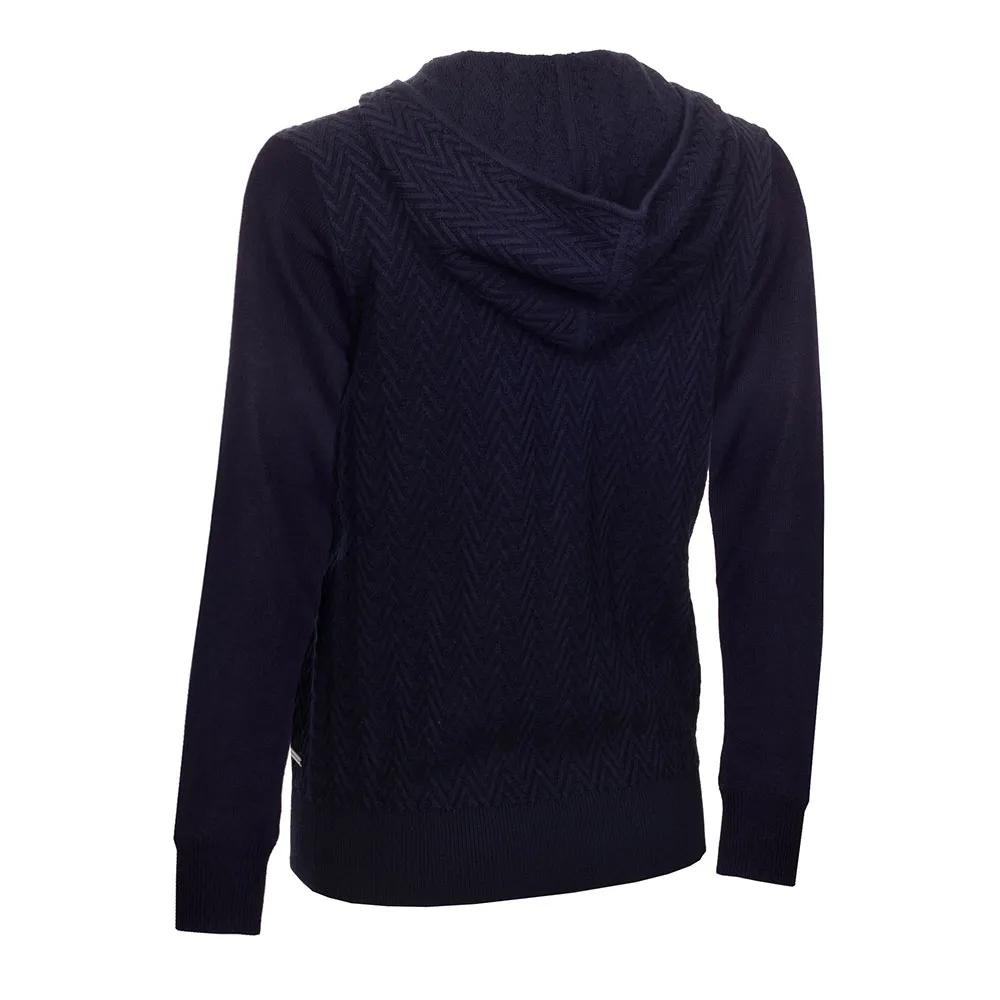Cardigan tricoté à fermeture éclair intégrale avec motif de point de chevron sur le devant et le dos.