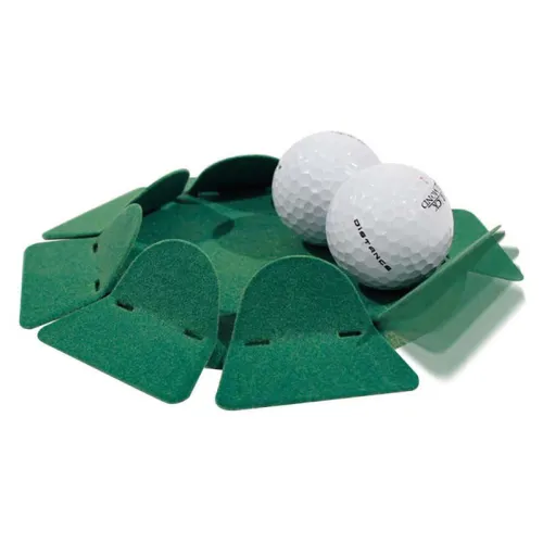 Du trenger bare å plassere den på bakken på ønsket avstand og putte! Den har hengslede sideplater som lar ballen rulle inn i koppen og hindrer den i å slippe ut når den er inne.