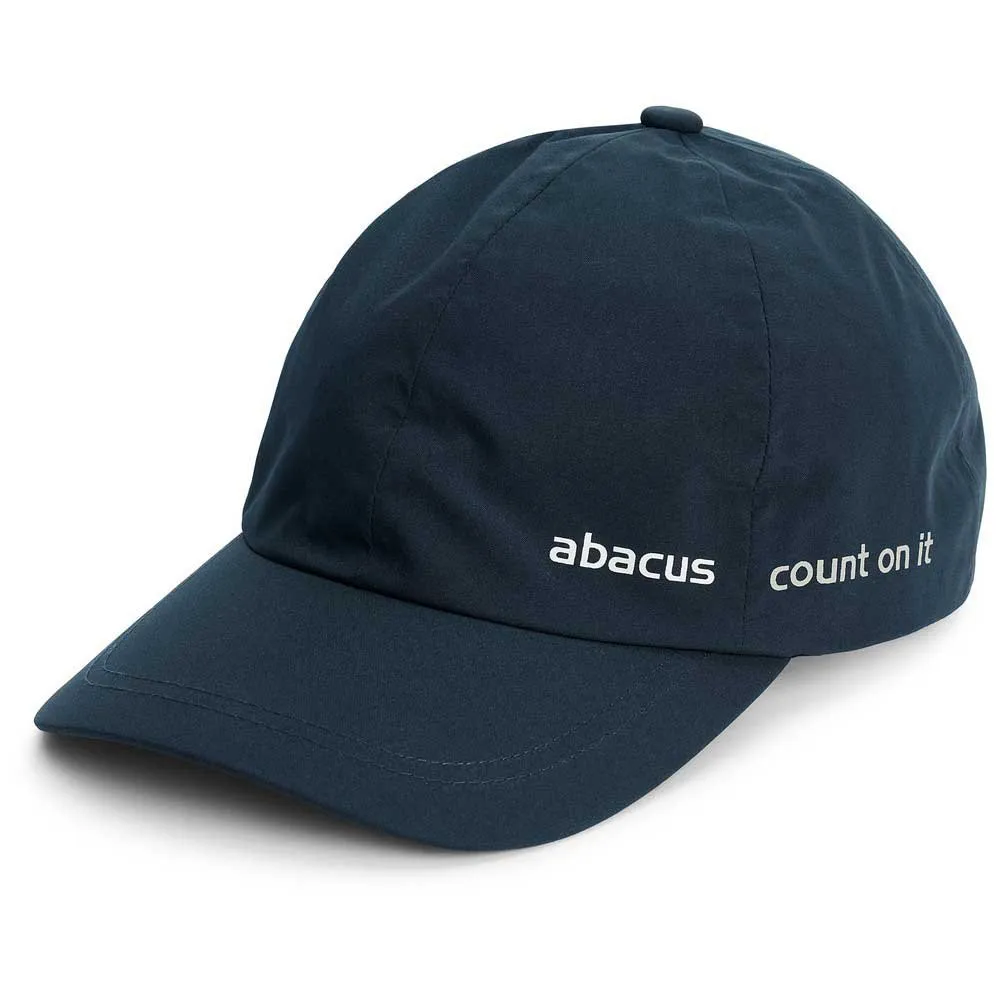 A alça ajustável na parte de trás e o logótipo Abacus no lado esquerdo do boné.