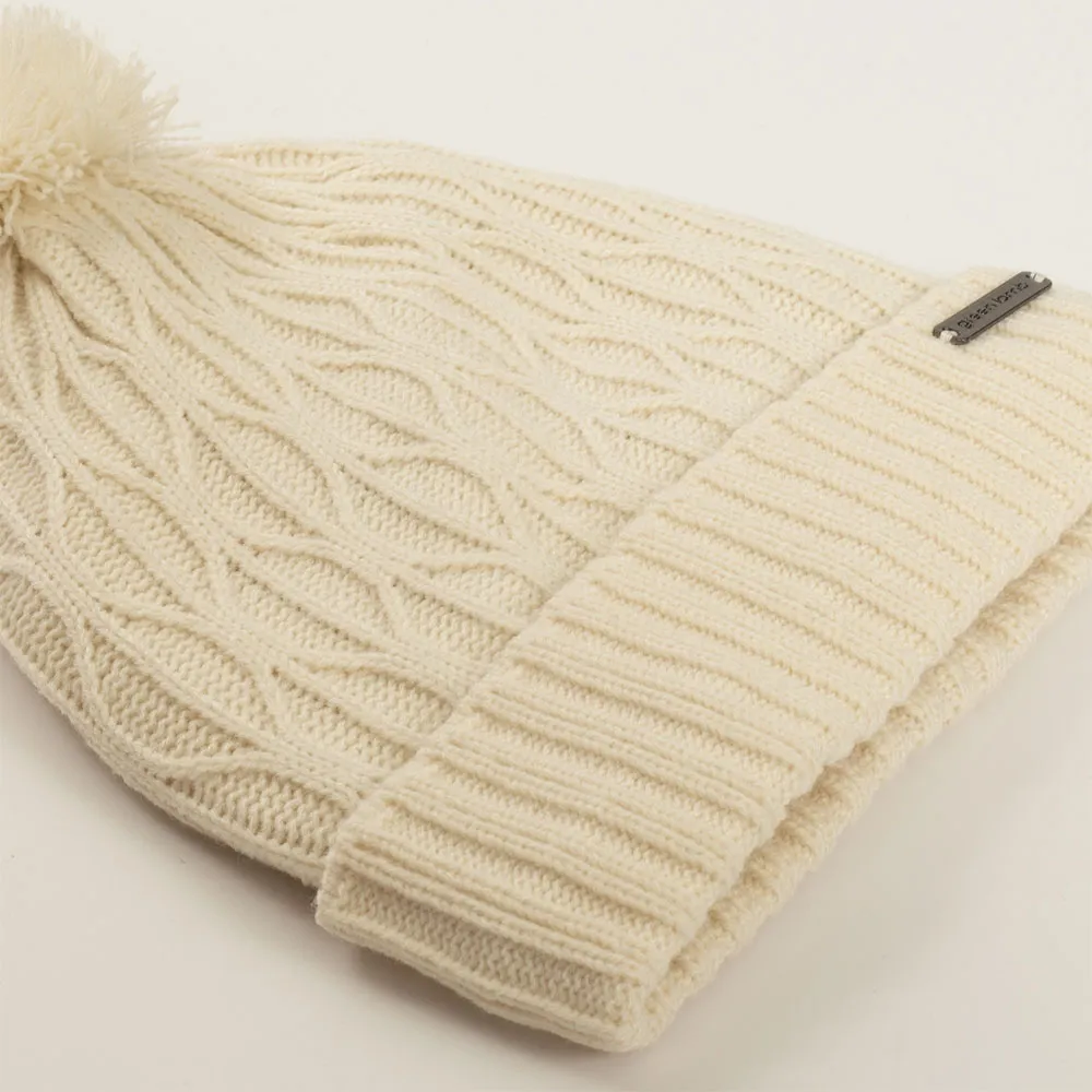 O gorro com pompom Marybeth da Green Lamb exibe um padrão de ponto de treliça impressionante com acabamento em tricô canelado e será o toque final para o seu visual neste inverno.