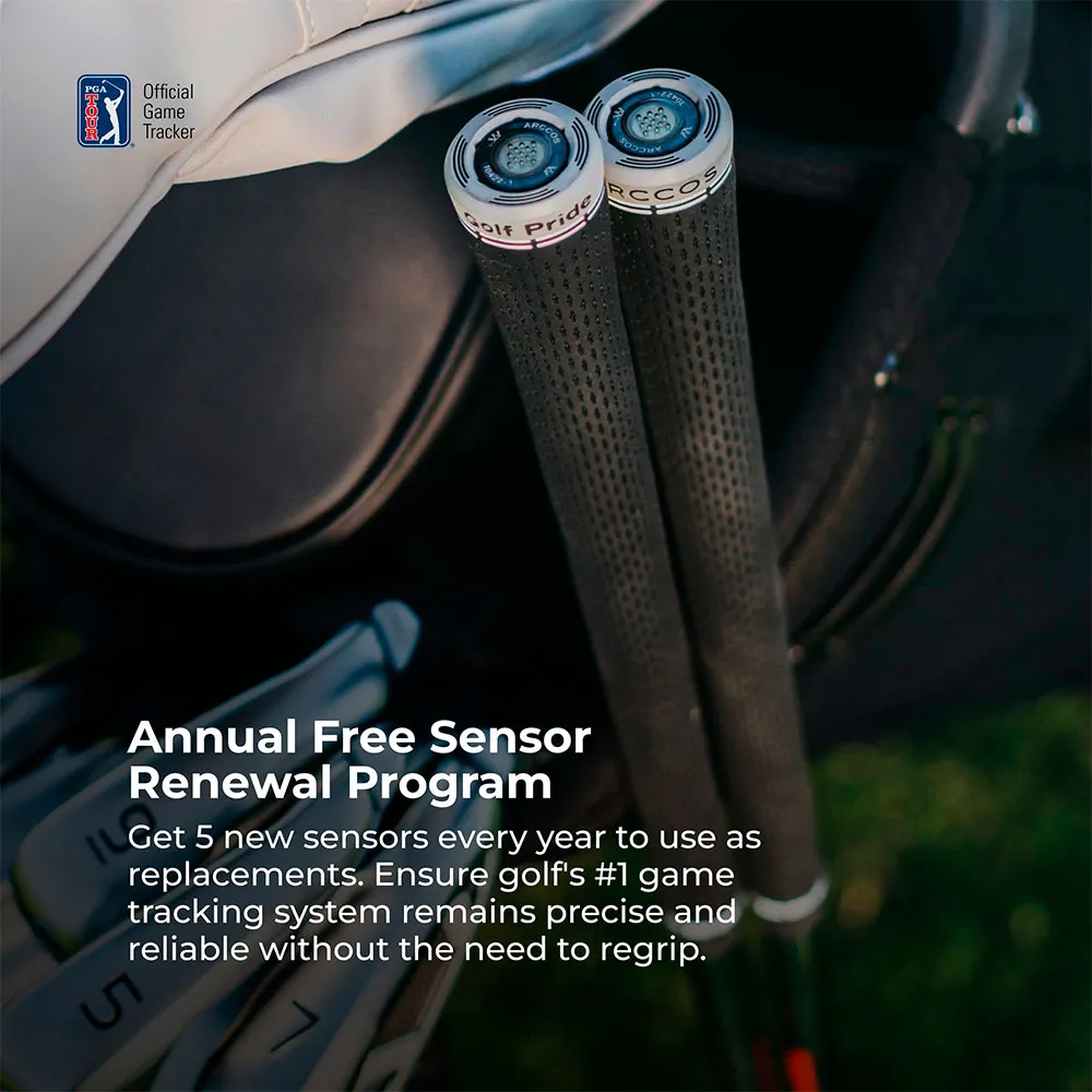 Vårt Arccos Smart Grips spelspårningssystem inkluderar: