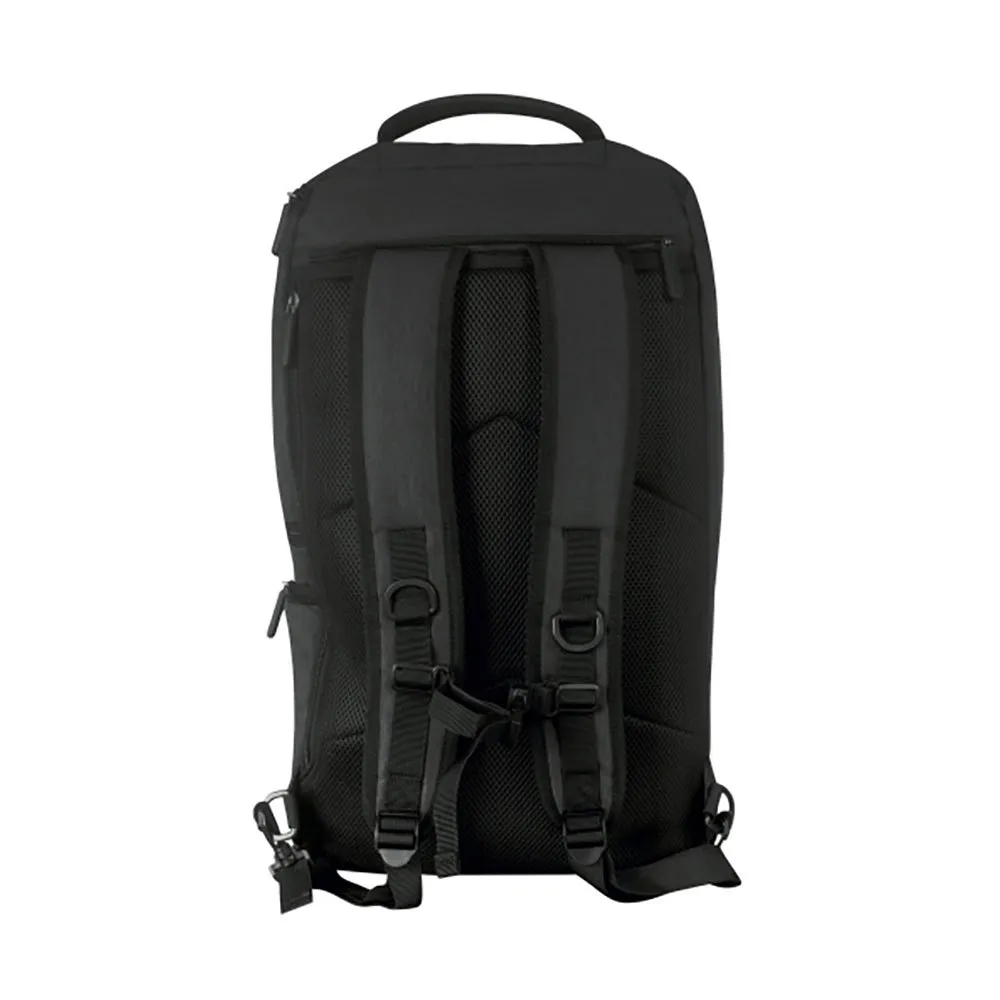 Individually adjustable, padded shoulder straps and padded back for comfortable carrying as a backpack.