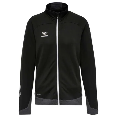 La chaqueta con cremallera de poliéster para mujer de hmllead está confeccionada con un tejido ligero de sudor con elasticidad adicional, lo que te permite moverte tanto dentro como fuera de la pista. esta chaqueta hummel® tiene una cremallera frontal completa con cremallera protectora, así como dos bolsillos laterales con cremallera. los paneles en contraste en el canesú trasero y los costados canalizan el diseño deportivo clásico.