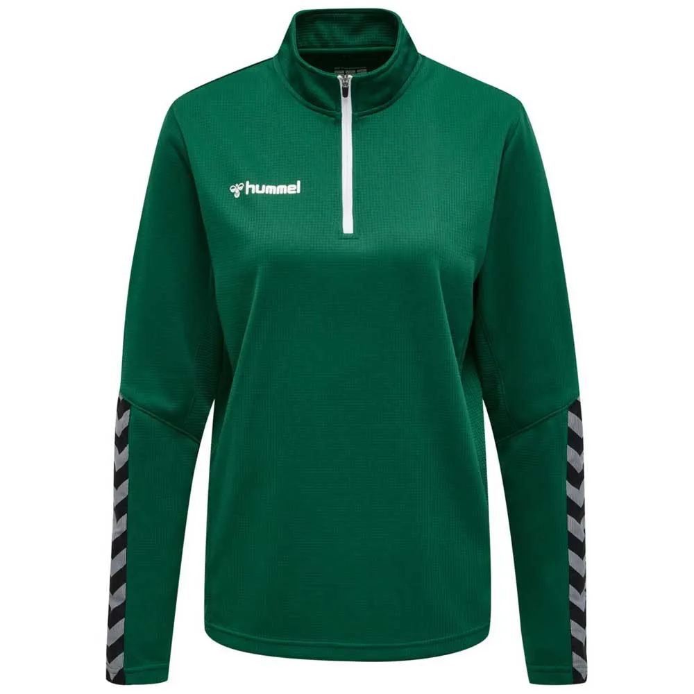 Ligero y aerodinámico, el hmlAUTHENTIC HALF ZIP SWEATSHIRT WOMAN proporciona todo lo que necesitas para destacar en los entrenamientos o en los días de partido.