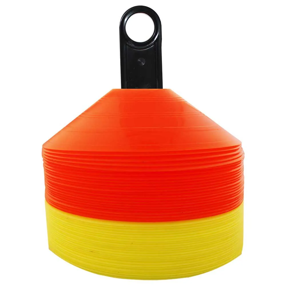 Système Bicolore : Le lot est généralement fourni avec 24 unités par couleur, permettant une distinction visuelle claire lors des exercices et des activités en équipe Dimensions optimales : Chaque cône a un diamètre de 19 cm, offrant une base stable et une cible visuelle claire qui est efficace sans être un obstacle gênant pour les athlètes.