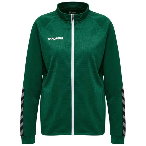 KURTKA hmlAUTHENTIC WOMEN POLY ZIP jest wykonana z dzianiny poliestrowej, która zapewnia lepsze odprowadzanie wilgoci i wyraziste wykończenie zewnętrzne.