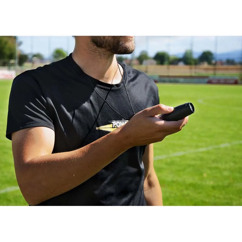 Eleve sua arbitragem e treinamento com o Apito Eletrônico POWERSHOT, a solução moderna para sinalização clara, potente e higiênica. Projetado para profissionais que exigem consistência e desempenho, este apito operado manualmente emite um sopro potente com o simples toque de um botão. Ele elimina completamente a necessidade de contato com a boca, estabelecendo um novo padrão de segurança e higiene em qualquer ambiente esportivo ou de treinamento.
