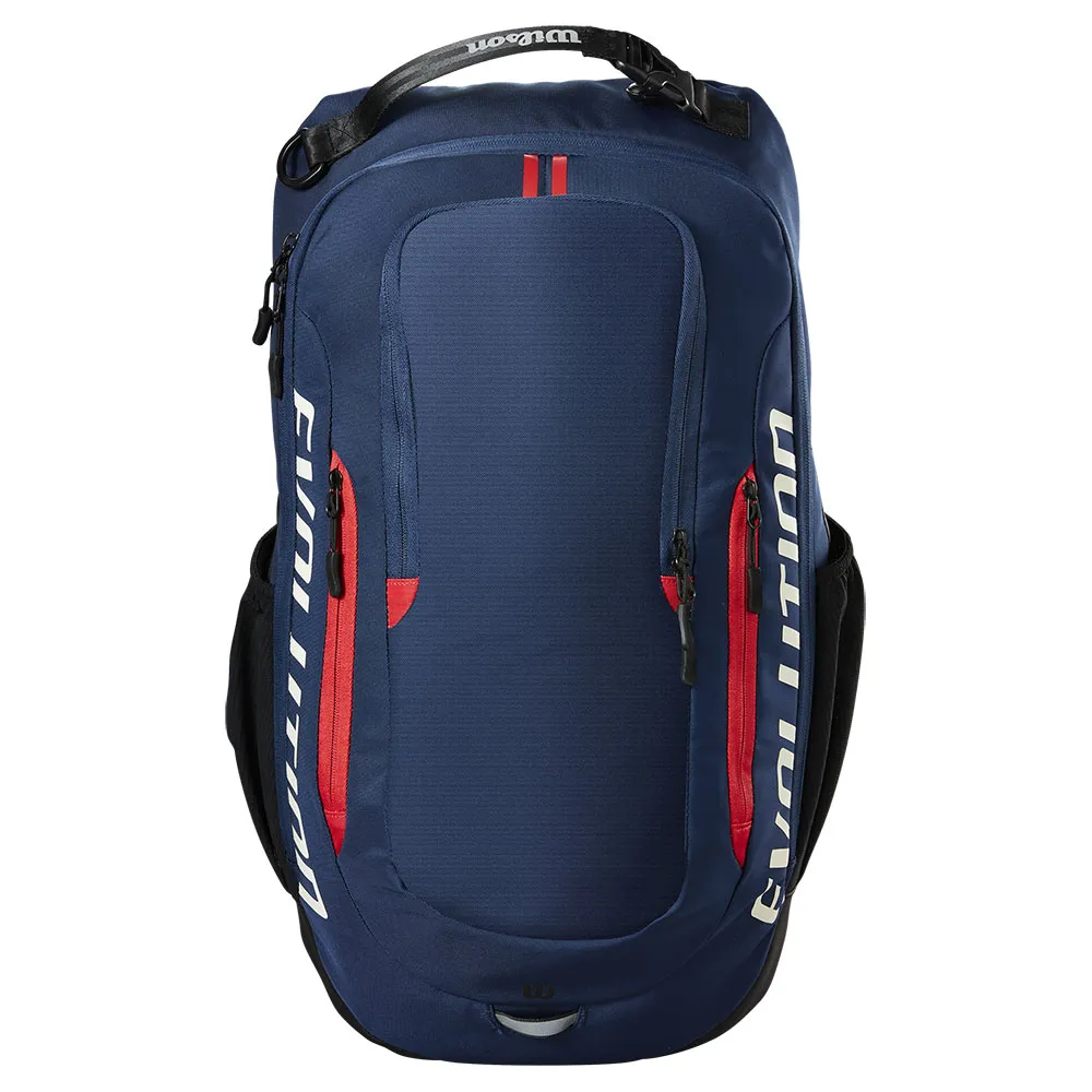 Evolution Gearpack kompromissar inte med komforten. Vadderade axelremmar och en ventilerad bakpanel ger en bekväm och stödjande bärkänsla, även när den är fulladdad. Dess eleganta, moderna design och ikoniska WILSON-märkning gör ett statement både på och utanför planen, vilket återspeglar din passion för sporten.