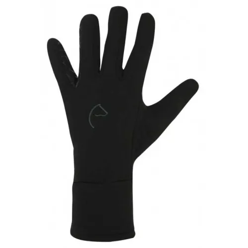 Varme fleece-forede handsker, med 2 touchscreen-kompatible fingre, så du kan bruge din telefon uden at skulle tage handskerne af. Håndflader med silikoneforstærkning for at styrke grebet om tøjlerne. Håndryggen i blød polyester, dekoreret med Equithème-logoet.