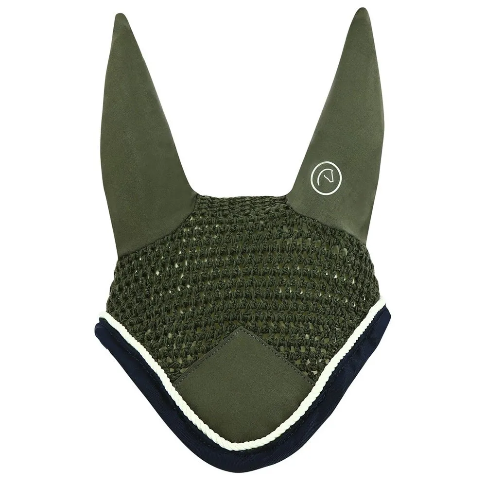 Farverig beskyttelse mod fluer! Fremstillet af hæklet bomuld, med ørestykker i stretchstof, trekantet indlæg og vævet bomuldskant. Forstærket med fin fletning i kontrastfarve. Passer til EQUITHÈME "Polyfun" sadelpuder. Nyt EQUITHÈME logo på venstre øre.