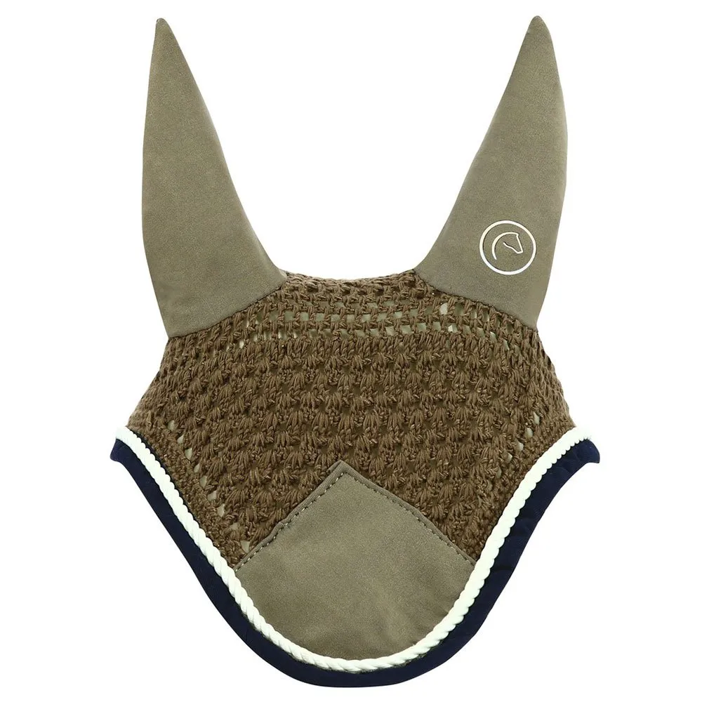 Farverig beskyttelse mod fluer! Fremstillet af hæklet bomuld, med ørestykker i strækstof, trekantet indlæg og kantvævet bomuld. Forstærket med fin fletning i kontrastfarve. Passer til EQUITHÈME "Polyfun" sadelpuder. Nyt EQUITHÈME logo på venstre øre.